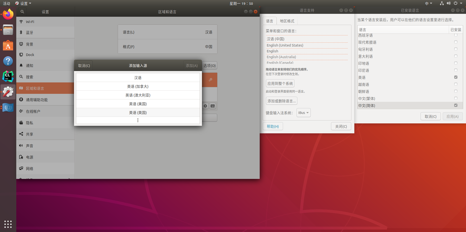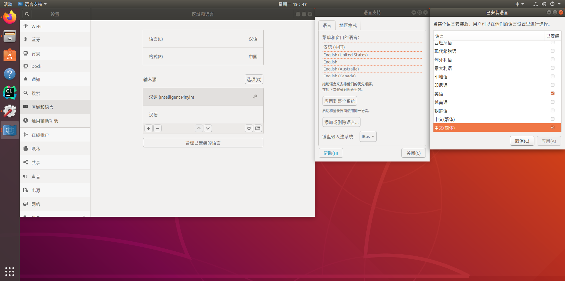 管理已安装的语言, 添加或删除语言...,中文简体(勾选),应用