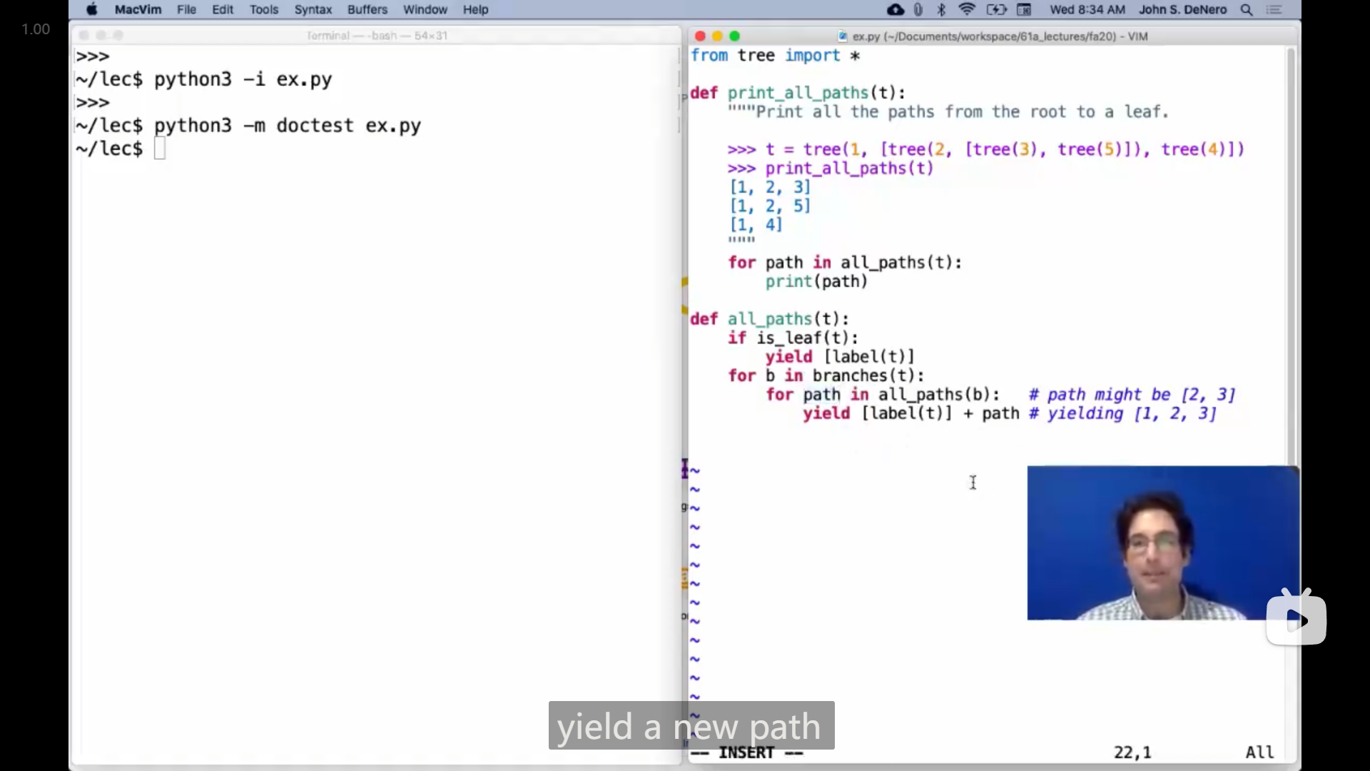 然后在测试文档的一个测试用例中,用 next() 使用函数返回的生成器,显示 StopIteration ,