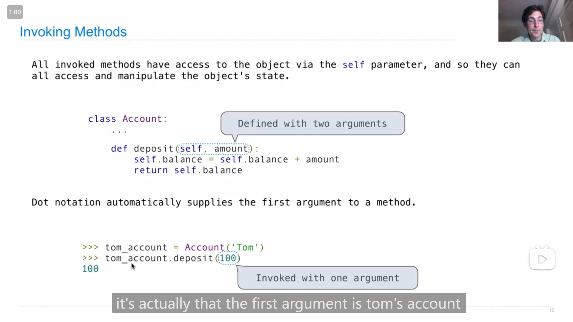 但类内方法在被调用的时候,不需要传入 self 的值,或者说 self 就是调用方法的实例,所以只需要传入之后的参数