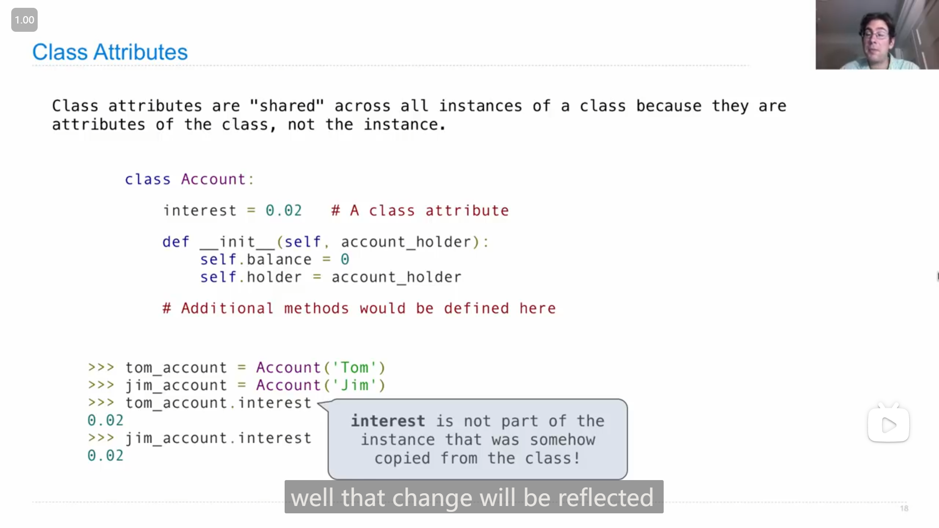 类属性不是对象/实例的一部分,而是类的一部分。每次通过对象来访问类属性,访问的是类中的属性,而通过 对象.属性名 赋值/更改属性,其实是在对象中创建/更改对应的属性(所以通过对象修改“类属性”不会更改实际的类属性)