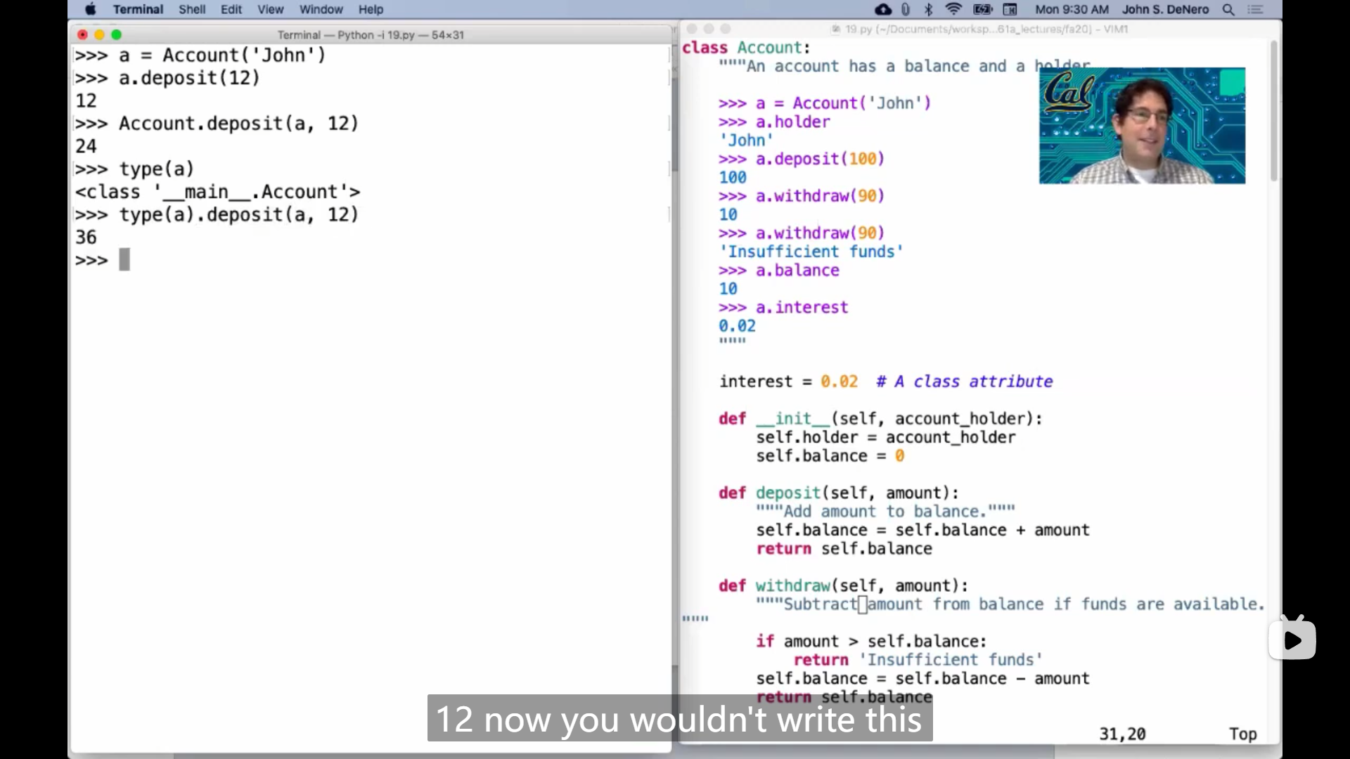 如上图,类名.方法名 是一个函数,并且 self 参数需要传入东西,而 对象.方法名 是一个方法,self 不用传