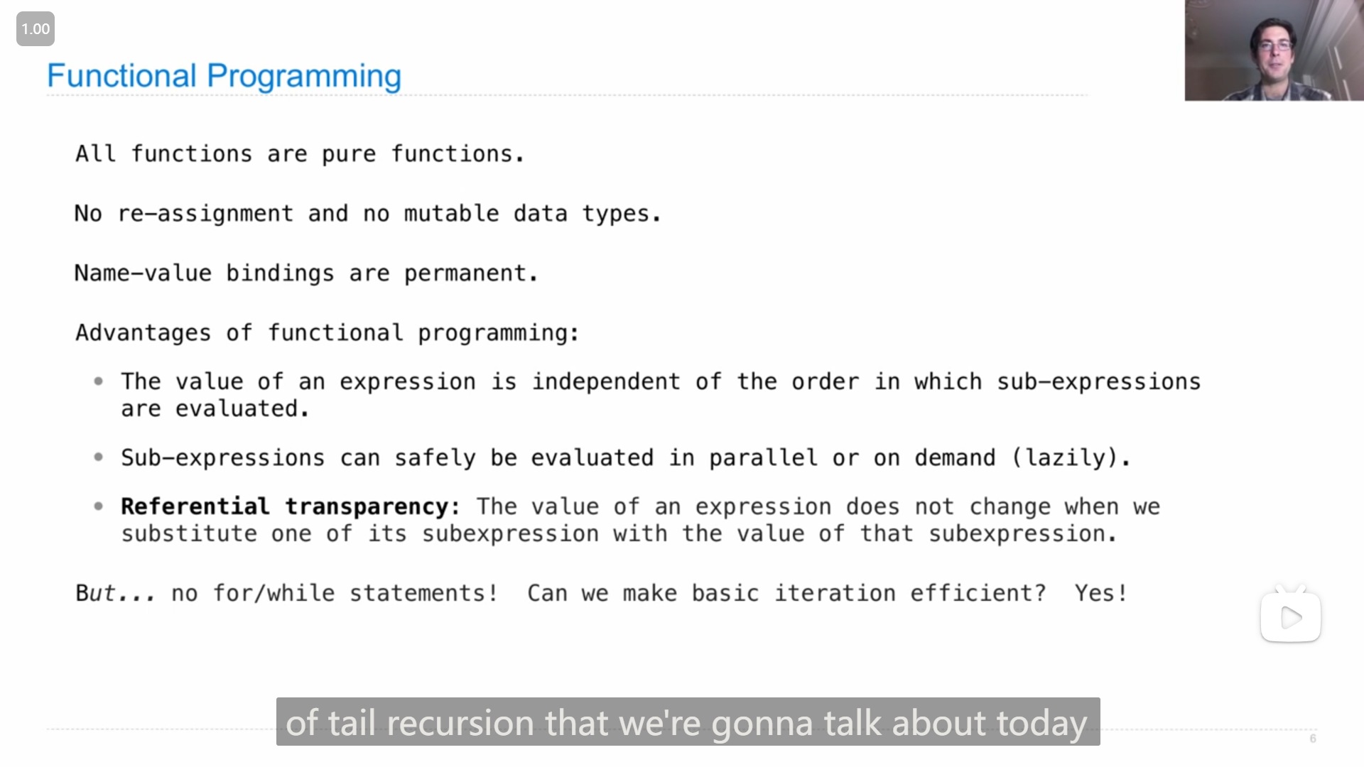So, there's more flexibility in a declarative language interpreter. We'll see what I mean by that in time, but here's a place to start: in an imperative language, if you write a quadratic time algorithm by specifying that computational process, it's probably gonna run in quadratic time. But in a declarative language, you just say what you want, and if there are multiple ways to compute that, one of which runs in quadratic time and one of which runs in linear time, well, it's up to the interpreter to choose among those options in order to compute what you want as efficiently as possible.