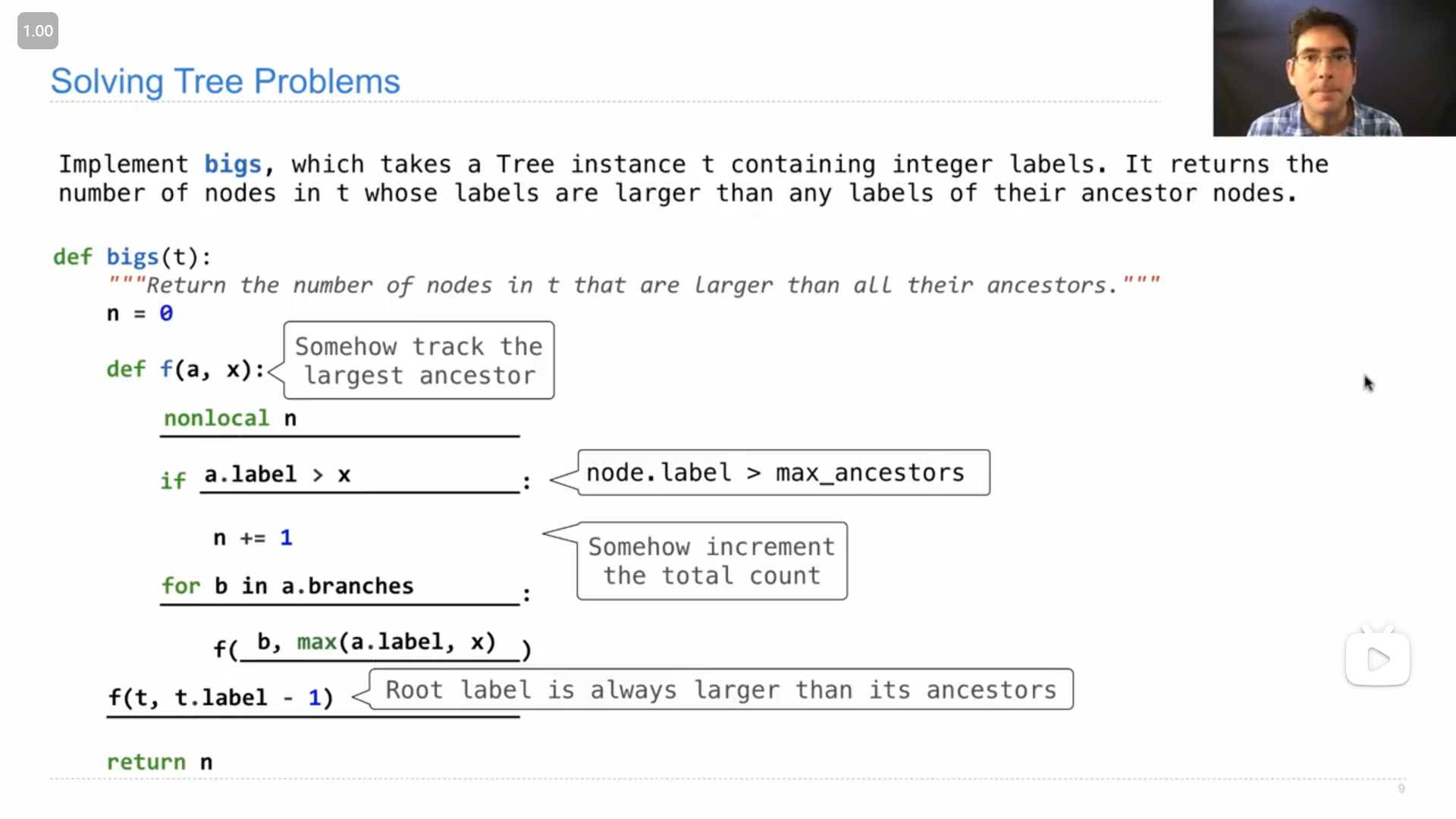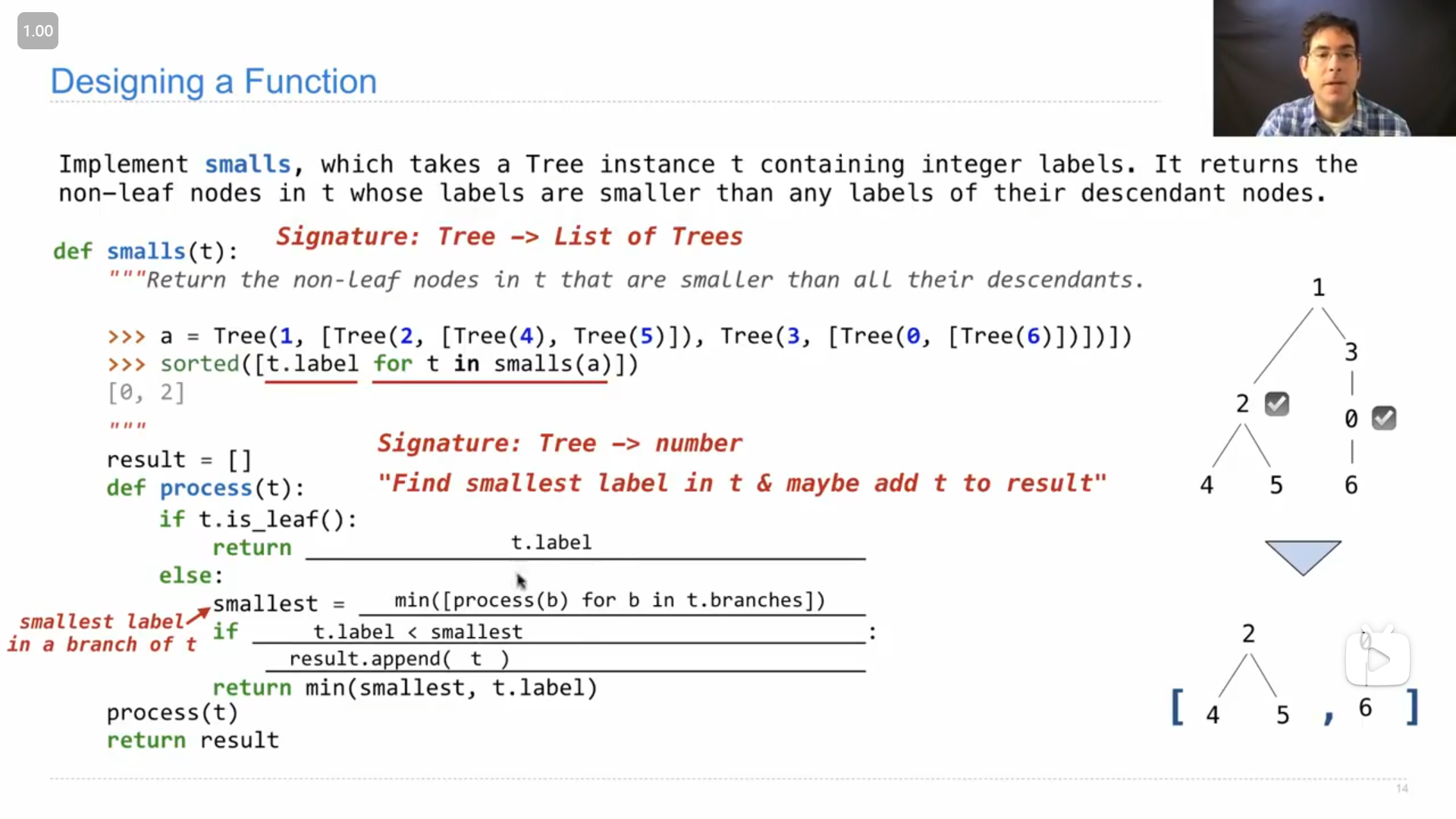"""Return the non-leaf nodes in t that are smaller than all their descendants.